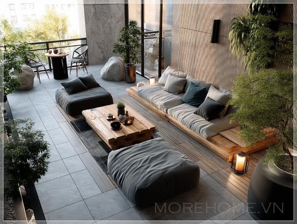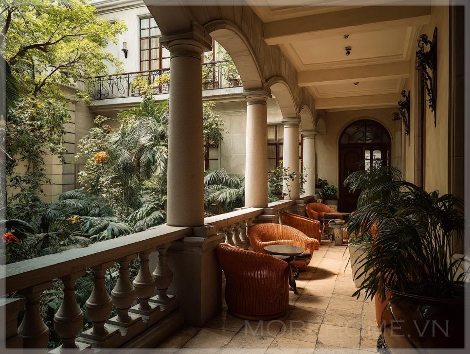 Hình ảnh độ phân giải cực cao cho thấy một ban công. Ngôn ngữ thiết kế của bức ảnh tự do và mượt mà, kết cấu nội thất cao cấp, sự đan xen của đồ đạc và vật liệu tạo ra một không gian nghệ thuật, thanh thoát và đầy cảm hứng. Toàn bộ không gian yên tĩnh và nội tâm, giống như một bức tranh. Bức ảnh này được chụp bằng máy ảnh Hassou X2D100C 100MPIBIS PDAF f/2, nổi bật với sự đơn giản thanh lịch và hiện thực. Khi chụp, máy ảnh ở chế độ thủ công, khẩu độ được đặt ở f/5.6, và ISO được điều chỉnh về 400.