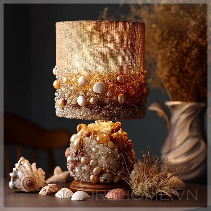 Được trang trí bằng những viên ngọc óng ánh, hạt glitters và vỏ sò, đèn Siren không chỉ là một nguồn sáng mà còn là một tác phẩm nghệ thuật, phản chiếu vẻ đẹp của đại dương. Ánh sáng dịu nhẹ từ chiếc đèn này lan tỏa, tạo ra một không gian ấm áp và thư giãn, như làn sóng vỗ về bờ cát mỗi khi hoàng hôn buông xuống.