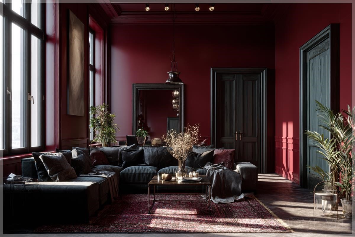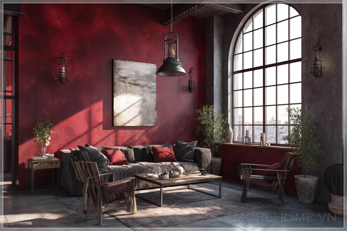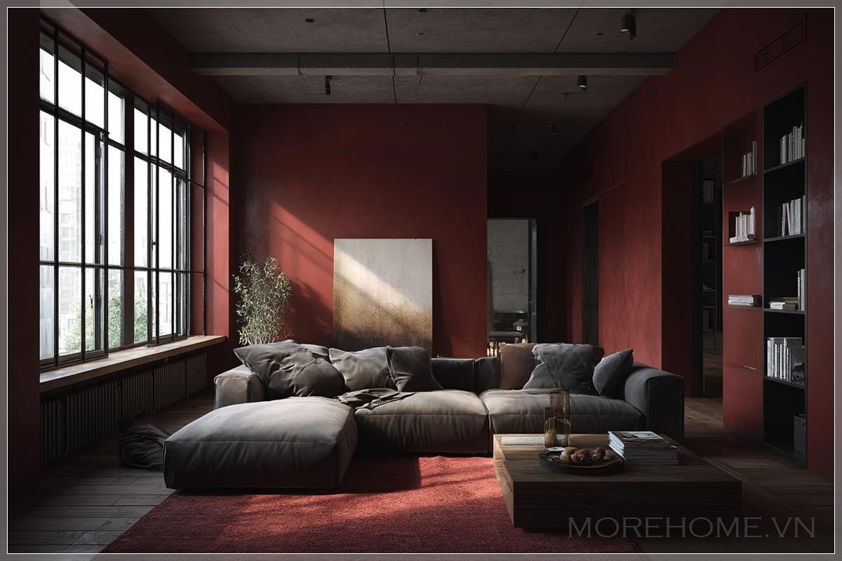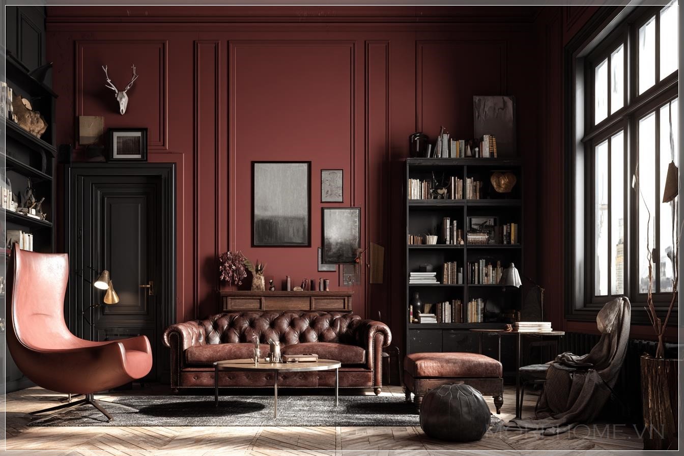Những bức tường sơn đỏ đậm tạo nên một không gian có vẻ u ám và nặng nề, như phản ánh tâm trạng của chủ nhân căn phòng. Màu sắc này không phải là một lựa chọn tươi sáng, mà là một sự lựa chọn có chủ đích, mang đến cảm giác sâu sắc và đầy suy tư. Đó là một không gian nơi những suy nghĩ lớn lao, những trăn trở không bao giờ nguôi, và đôi khi, một chút cô đơn cũng hiện hữu trong từng góc nhỏ.