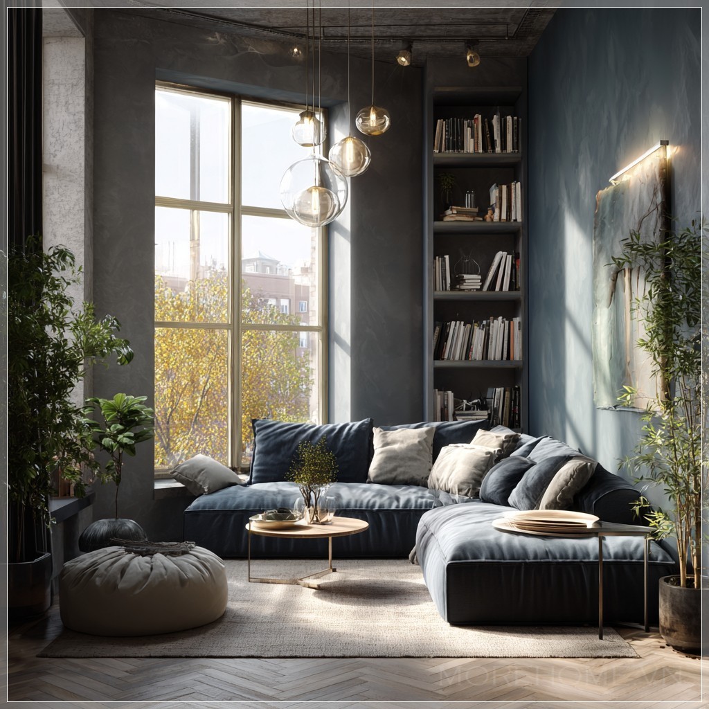 Phòng khách được thiết kế đa chức năng, phục vụ linh hoạt cho nhu cầu sinh hoạt của cá nhân cao cấp. Một chiếc sofa màu xám nhạt dạng module dễ dàng thay đổi bố cục, phục vụ cả thư giãn cá nhân lẫn tụ họp cùng bạn bè. Bàn trà có thể kéo rộng hoặc thu gọn, đi kèm hộc lưu trữ giấu kín bên trong, phù hợp với lối sống hiện đại gọn gàng. Một khu vực đọc sách được bố trí nhẹ nhàng bên cửa sổ, đủ yên tĩnh để đắm mình trong những cuốn sách nhẹ nhàng khi thời tiết ấm lên. Sự đa năng không đến từ số lượng đồ nội thất, mà từ chính tư duy tổ chức không gian thông minh và tinh giản.