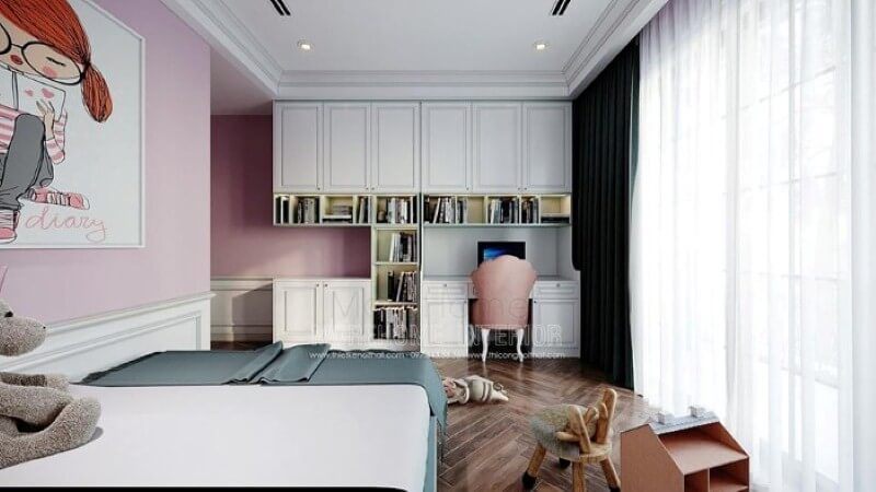 Trang trí nội thất phòng ngủ trẻ em đẹp, sinh động, đáng yêu với tone hồng nhẹ nhàng, cuốn hút.