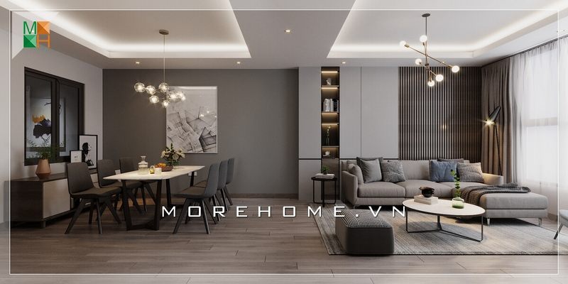 Trang trí nội thất phòng khách kế phòng ăn hiện đại cho căn hộ chung cư là một trong những xu hướng thiết kế ấn tượng và được khách hàng lựa chọn nhiều nhất hiện nay.