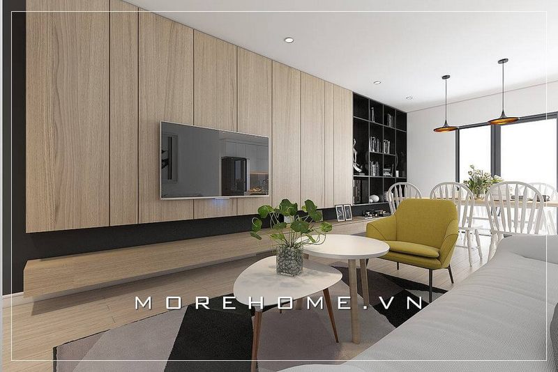 Thiết kế nội thất phòng khách liền phòng ăn hiện đại, đơn giản và trẻ trung