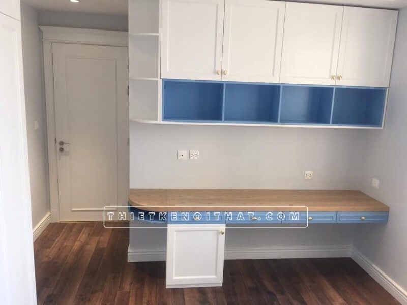 Việc thi công bàn học kết hợp tủ sách cho phòng ngủ trẻ em ở chung cư Dcapital Trần Duy Hưng tại Cầu Giấy, Hà Nội đã được hoàn thành.
